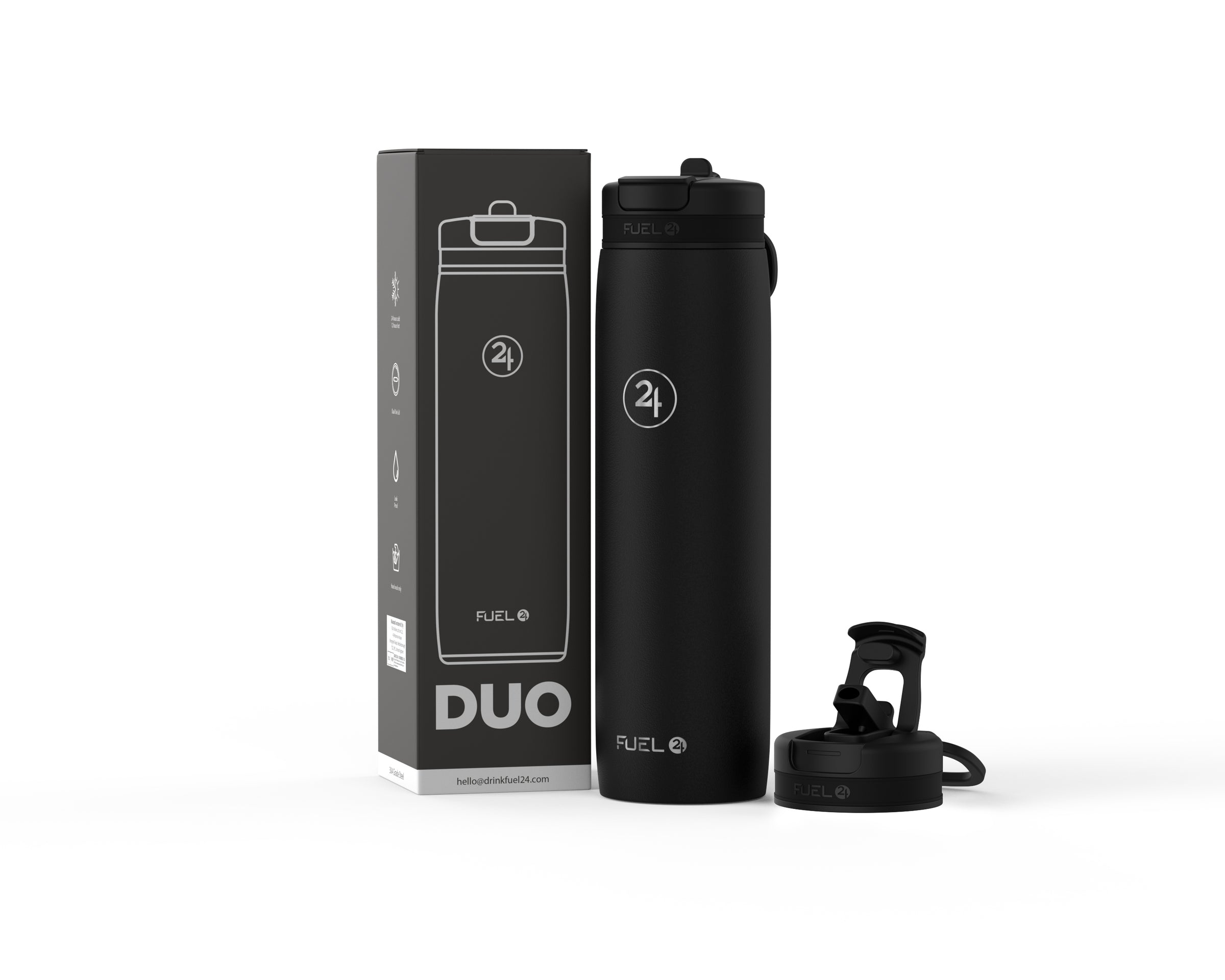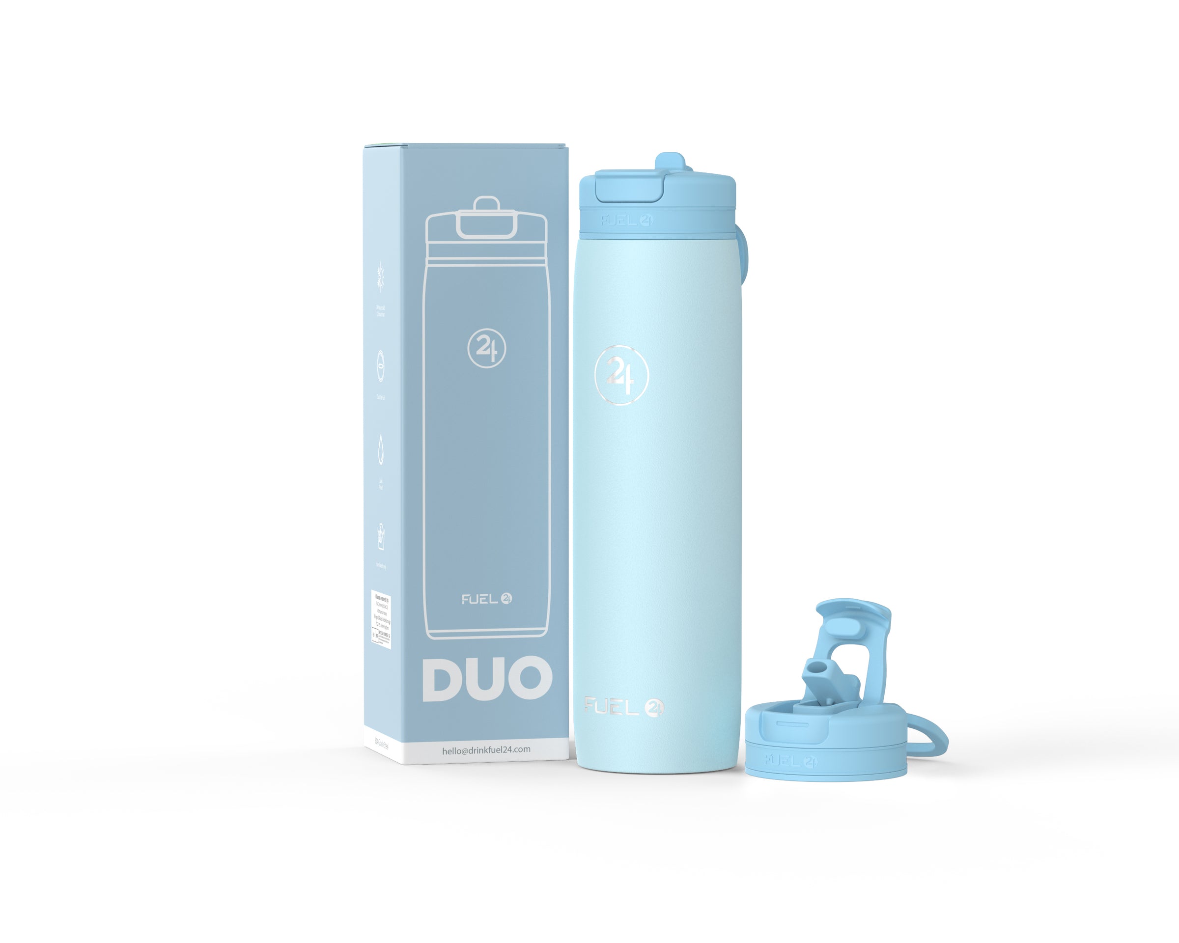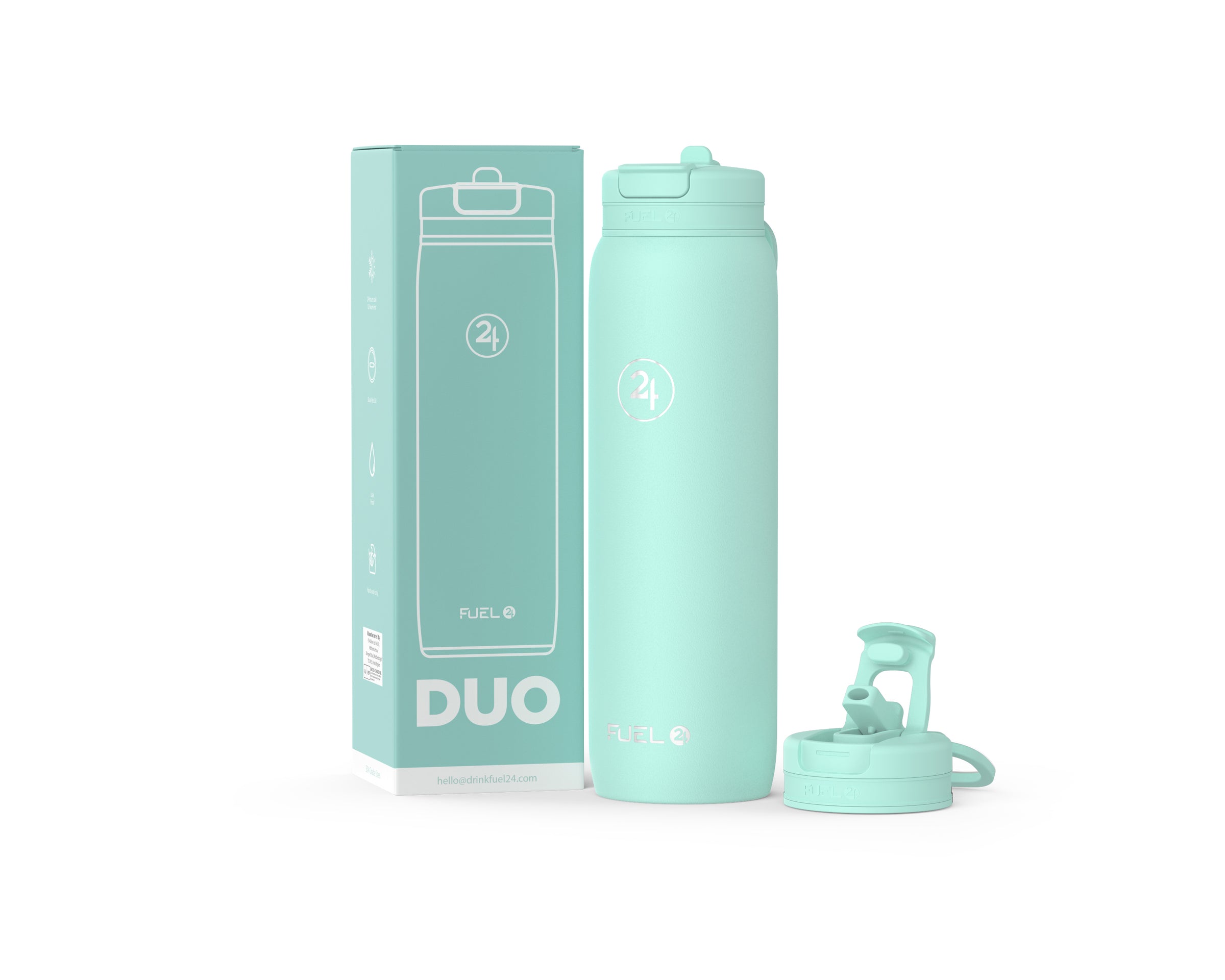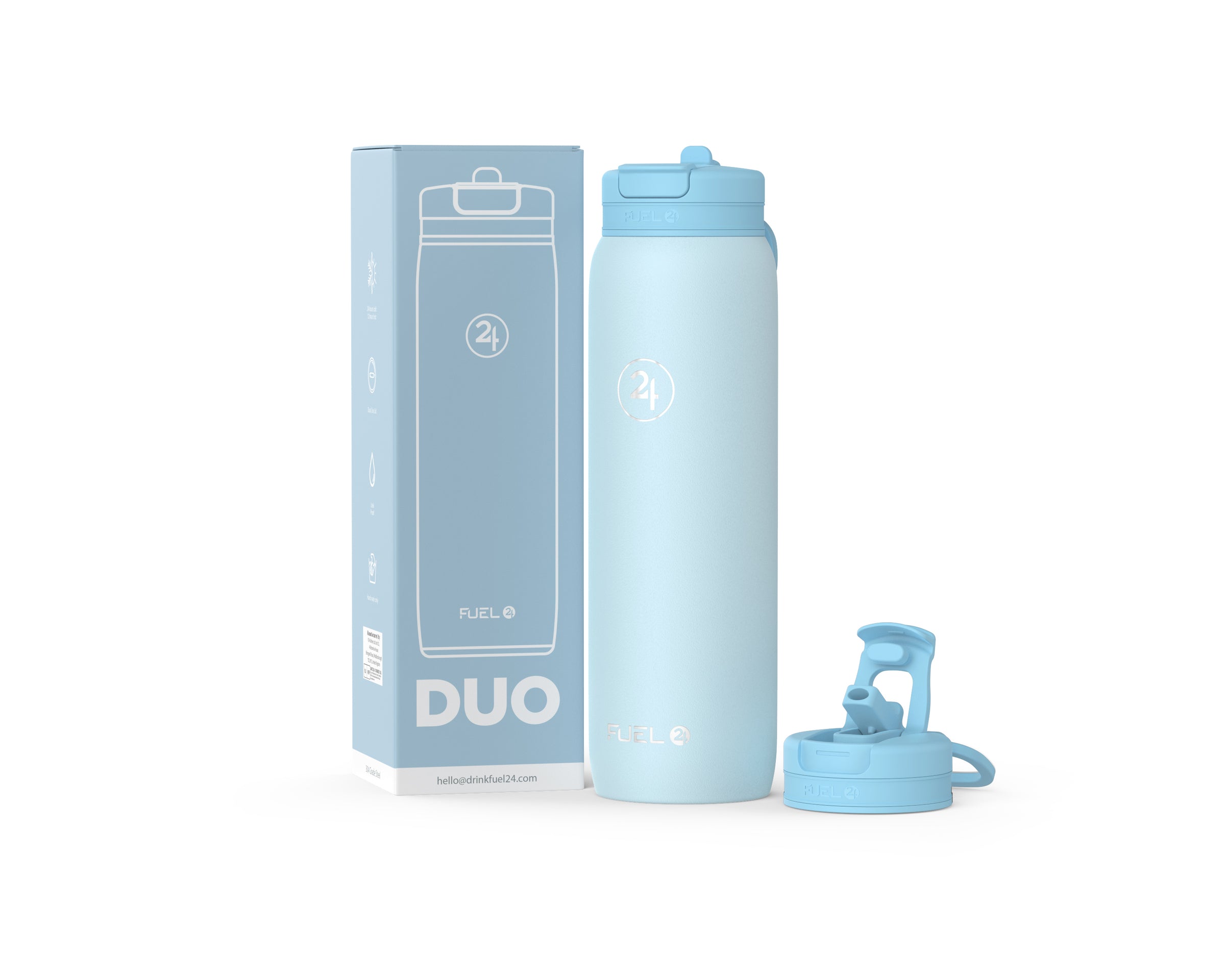 Meet the Duo bottle – the ultimate hydration companion. With its innovative dual-use lid, you can sip through the straw or gulp from the fast-flow spout anytime, anywhere. Made from premium 304 stainless steel and coated with a durable powder-coated finish. It's 100% leakproof whilst keeping drinks ice cold for 24 hours or hot for 12. It’s perfect for the gym, office, school, or outdoor adventures. Never compromise on hydration again.